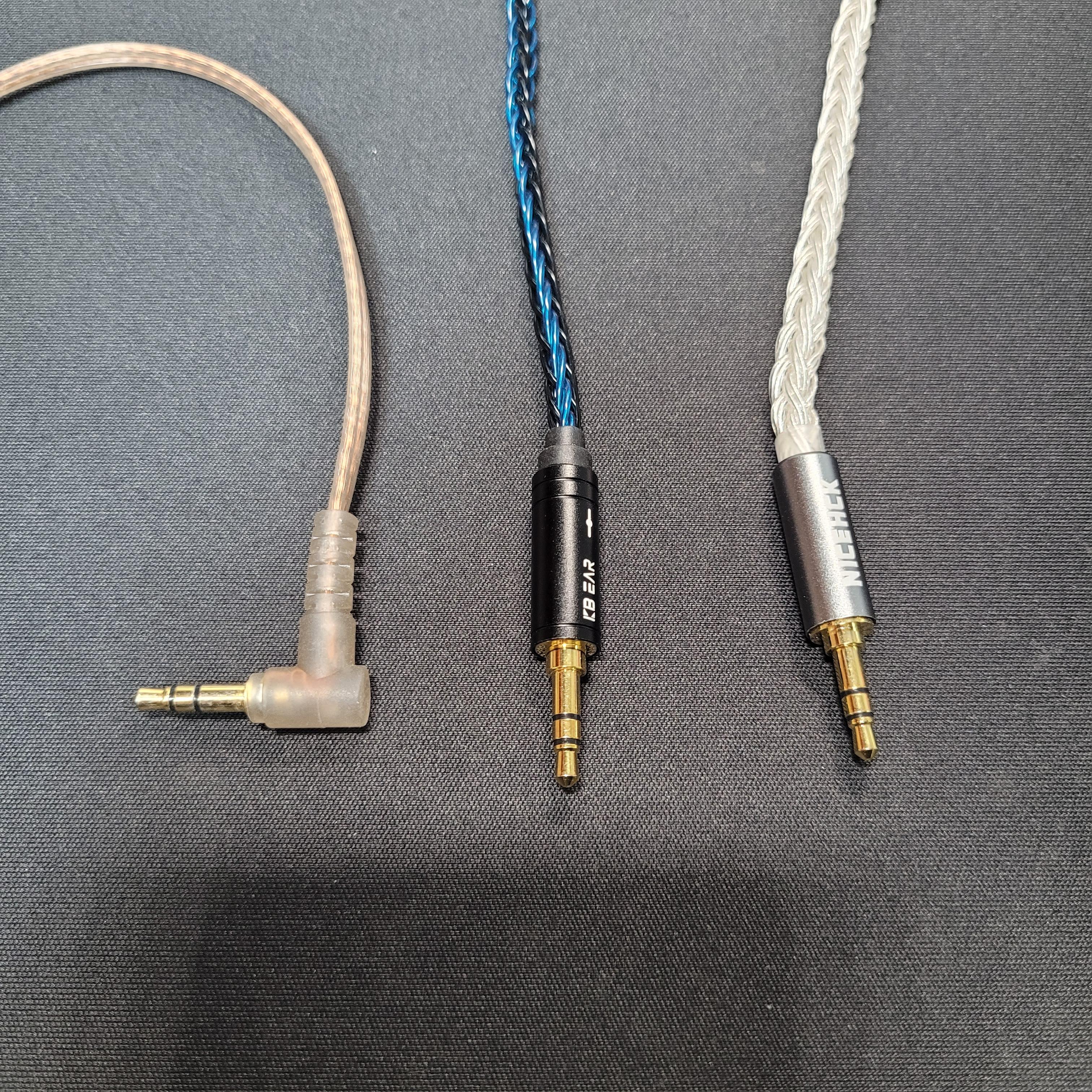 KZ 번들 케이블과의 굵기 비교입니다. 나름 튜닝 케이블이라 커넥터도 금속 재질로 되어 견고해보이고 무엇보다 케이블의 굵기가 압도적입니다. KBEAR 케이블은 8코어, Nicehck케이블은 16코어입니다. KZ 번들 케이블도 결국은 최소 4코어의 케이블이 지나가겠지만 각 코어의 두께도 압도적인 차이를 보여줍니다.